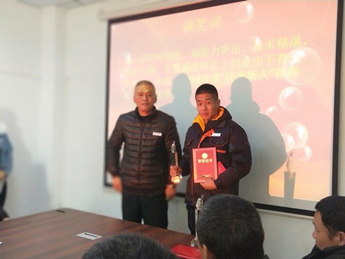 總經(jīng)理助理、辦公室主任王德華宣讀了頒獎詞,公司領(lǐng)導(dǎo)向獲得表彰的人員頒獎。徐總頒發(fā)了“先進個人、先進集體”獎;魏總頒發(fā)了“優(yōu)秀員工、技術(shù)創(chuàng)新之星”獎;胡總頒發(fā)了“技術(shù)能手、服務(wù)之星”獎;劉總頒發(fā)了“優(yōu)秀新人”頒獎。