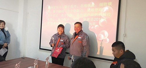 Wang Dehua,assistant to the general manager and director of the office, read the awards andthe company leaders presented awards to the people who received the award. Mr.Xu awarded the "Advanced Individual, Advanced Collective" award;General Wei awarded the "Excellent Staff, Technology Innovation Star"Award; Hu Zong awarded the "Technical Experts, Service Star" Award;Liu Zong awarded "Excellent Newcomers" Awards.